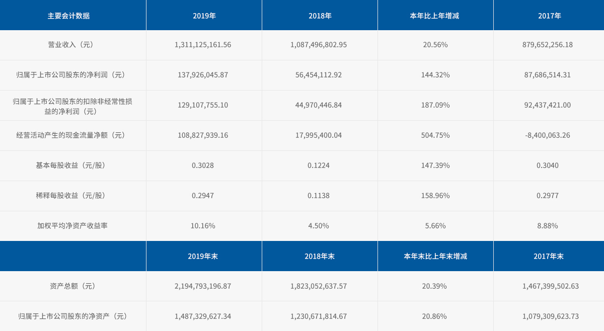 2019年度主要會計數據和財務指標