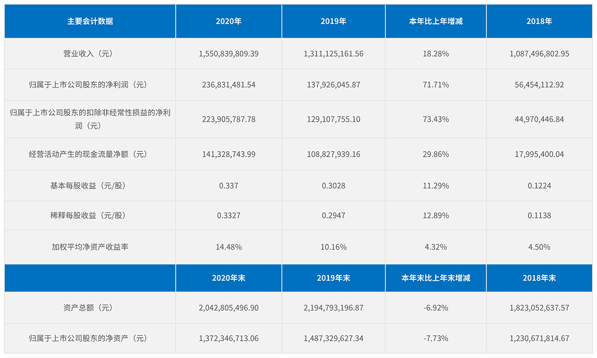 2020年度主要會計數據和財務指標