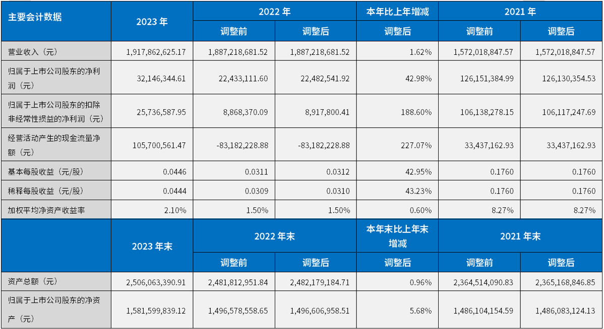 2023年度主要會計數據和財務指標
