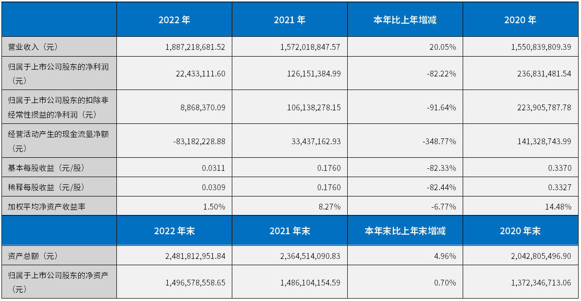 2022年度主要會計數據和財務指標