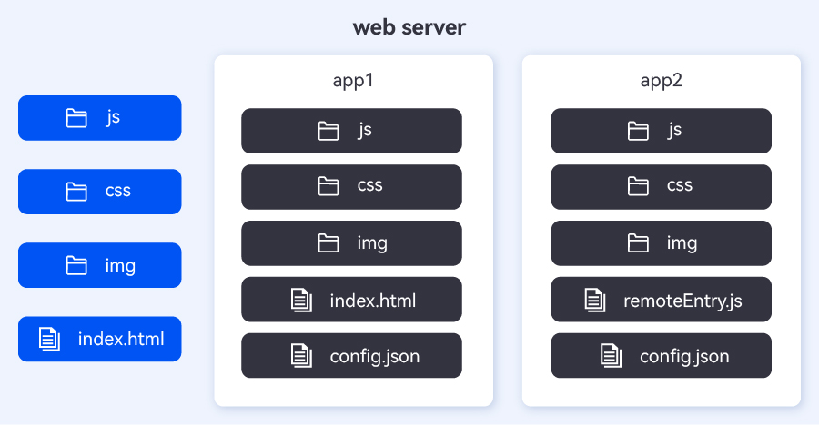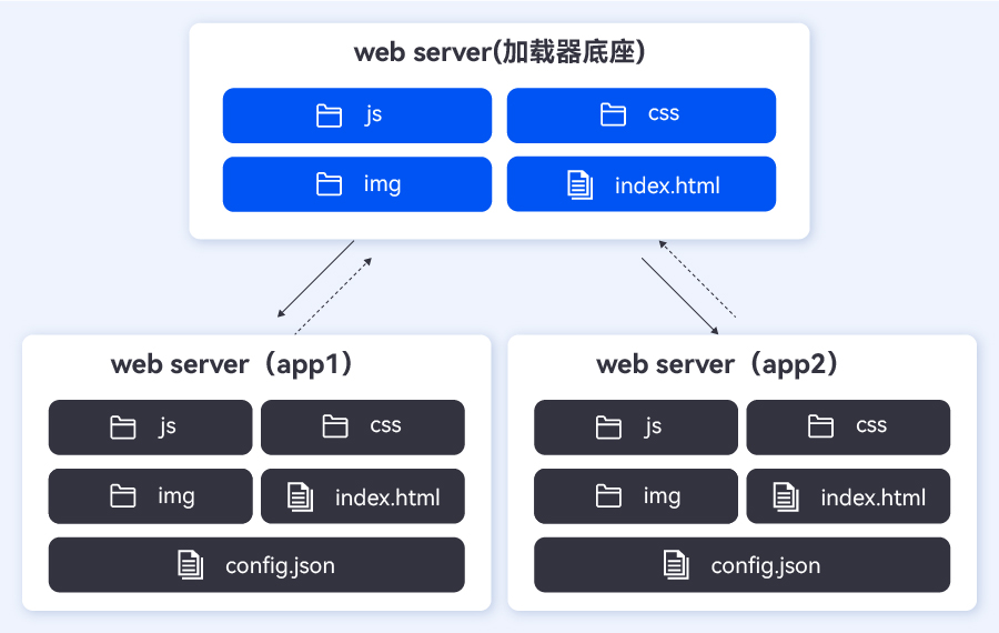 微前端的部署有兩種形式,一種是將所有微應用的資源與底座加載器合并成一個文件夾,進行合并部署,只提供一個Web服務;另一種則是將底座和微應用分開部署,每個微應用都提供單獨的Web服務。