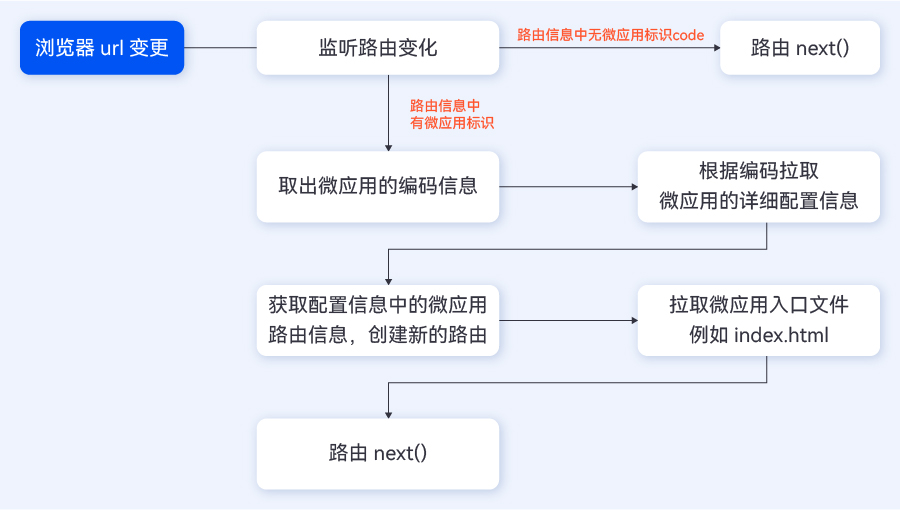加載器通過監(jiān)聽路由切換,主動獲取路由對應的微應用的靜態(tài)資源,繼而進行頁面渲染。