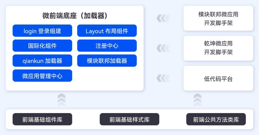 基礎類庫:為解決樣式和編碼規(guī)范統(tǒng)一等問題,需要一系列的基礎類庫,如基礎組件庫,樣式庫等;