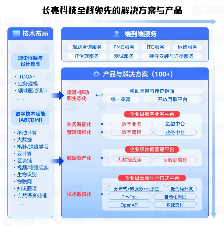 長亮科技作為數(shù)字化轉型的先鋒軍,在銀行業(yè)領域長期深耕,擁有業(yè)內(nèi)最全產(chǎn)品線,包含新核心、全套業(yè)務應用、全套數(shù)據(jù)管理、全套技術棧,滿足整體數(shù)字化轉型所需全套產(chǎn)品體系,并且產(chǎn)品均已得到市場檢驗。未來我們在現(xiàn)有基礎上,擁抱大數(shù)據(jù)、云計算、區(qū)塊鏈、AI智能等技術,持續(xù)深化數(shù)字技術在金融領域的應用。從人才儲備、技術產(chǎn)品布局、端到端服務、產(chǎn)品和解決方案,以“與客戶共創(chuàng)未來銀行”為目標,拓展銀行數(shù)字生態(tài)并進行全面業(yè)務轉型,以服務與解決方案、交付、研發(fā)為支點,全面構建企業(yè)級“智能+敏捷”服務框架,為銀行構筑自立自強的數(shù)字技術創(chuàng)新體系,筑牢可信可控的數(shù)字安全屏障,助力數(shù)字中國建設。