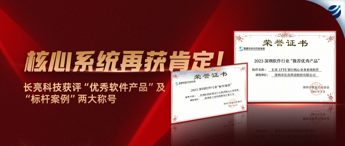 近期,經深圳市軟件行業協會專家委員會遴選,長亮科技自主研發的“長亮LTTS銀行核心業務系統軟件”獲評2023深圳軟件行業推薦優秀產品,同時,案例“中國郵政儲蓄銀行分布式核心業務系統”獲評標桿案例。