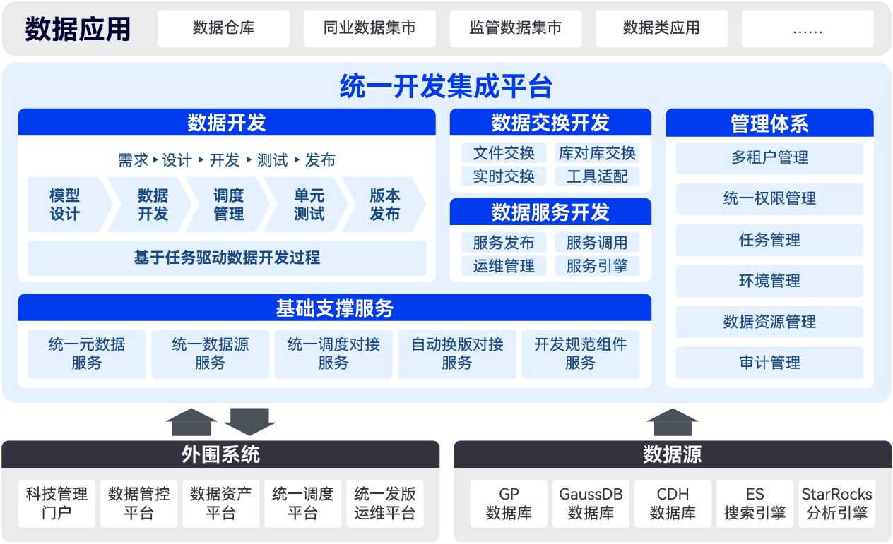 結(jié)合南京銀行的數(shù)字能力現(xiàn)狀,長亮科技項目團隊遵循“利舊原則”,對其現(xiàn)有數(shù)據(jù)產(chǎn)品進行全面整合與升級,集成了離線開發(fā)平臺、數(shù)據(jù)交換系統(tǒng)、統(tǒng)一調(diào)度平臺及大數(shù)據(jù)接口發(fā)布系統(tǒng),并打通了數(shù)據(jù)資產(chǎn)平臺、數(shù)據(jù)管控平臺、各源系統(tǒng)、科管及統(tǒng)一運維發(fā)版平臺。