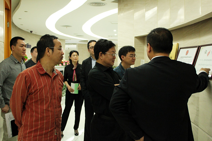 王東副區(qū)長(前排中)了解公司近年來取得的資質(zhì)和榮譽