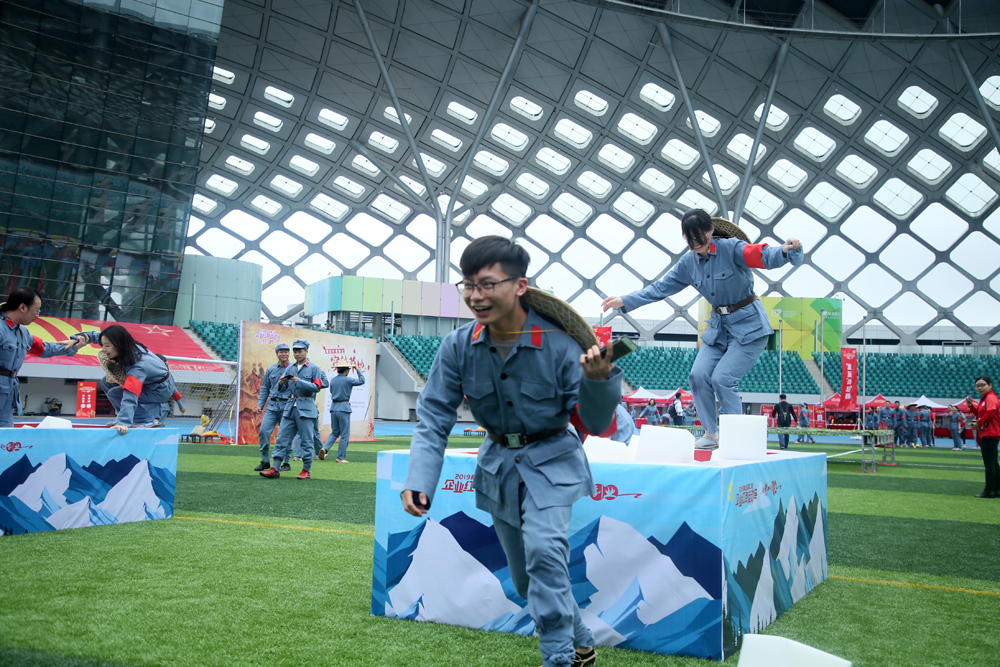 運動會結合長征路途上的艱苦環境與紅軍們的英勇事跡共設計了7種不同類型的團隊比賽項目,讓運動員在活動過程中感受革命先輩的艱辛。比賽項目分別是重返長征路、巧奪臘子口、爭當醫療兵、擊鼓送紅軍、巧渡金沙江、合力承薪火、邁向新時代。