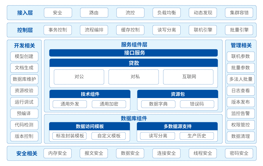 ■ 整體架構(gòu)通過分層實現(xiàn)數(shù)據(jù)、業(yè)務(wù)組件、交易有效分離,實現(xiàn)業(yè)務(wù)數(shù)據(jù)和業(yè)務(wù)邏輯分離;